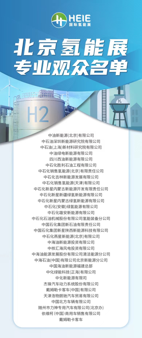 2023-05-122023北京國際氫能技術(shù)裝備展覽會(huì)(簡(jiǎn)稱:HEIE2023)由中國產(chǎn)業(yè)發(fā)展促進(jìn)會(huì)氫能分會(huì)和振威展覽集團(tuán)聯(lián)合主辦。將于5月31日-6月2日在北京•中國國際展覽中心(新館)舉行展會(huì)設(shè)“8館14區(qū)”總展覽面積10萬+平方米預(yù)計(jì)參展企業(yè)1800余家其中世界500強(qiáng)企業(yè)46家國際展團(tuán)18個(gè),參觀.........【詳情】