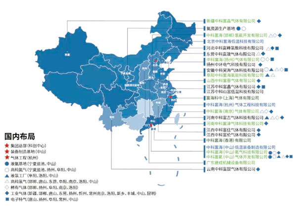 中科富??偛吭O(shè)立在北京,目前已成立25家分子公司,在鄂爾多斯建立BOG提氦示范工廠,在安徽阜陽建設(shè)高純稀有氣體工廠和大型液氫工廠,在廣東中山建設(shè)集空分裝置、高純電子特氣、氦氣分裝、制氫于一體的綜合氣體島,在河南、山西、江蘇等地為多家化工、鋼鐵、光伏、鋰電池等企業(yè)提供了9萬、3萬、1萬等級的空分裝置和管道供氣等服務(wù),形成以設(shè)備研發(fā)、集成制造、EPC工程總包、工廠運行、氣體服務(wù)為一體的民族供應(yīng)商。中科富海已實現(xiàn)在大型低溫裝備與低溫工程、戰(zhàn)略氦資源及高純稀有氣體、氫能產(chǎn)業(yè)、高純電子特氣與工業(yè)氣體五大業(yè)務(wù)板塊規(guī)劃布局,奠定其在全國大鄂爾多斯盆地、京津翼、長三角、珠港澳大灣區(qū)重點區(qū)域的長遠發(fā)展。
