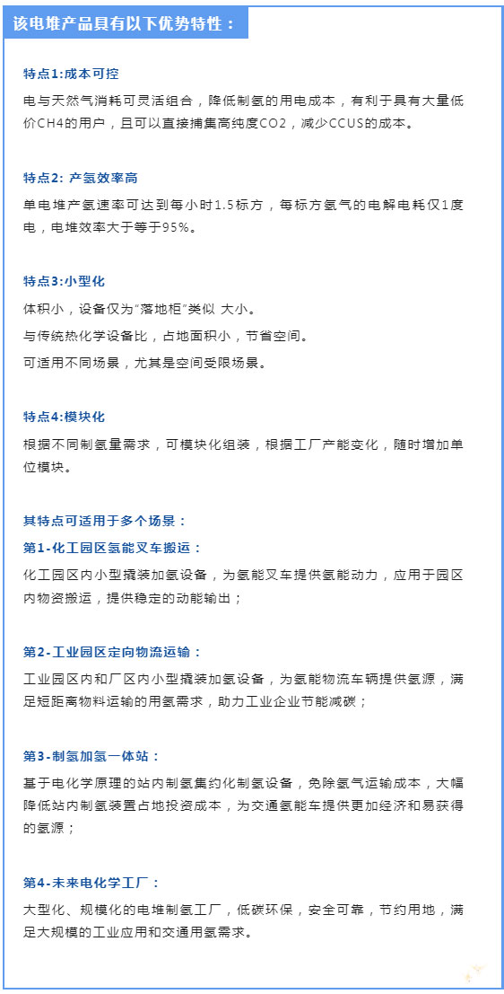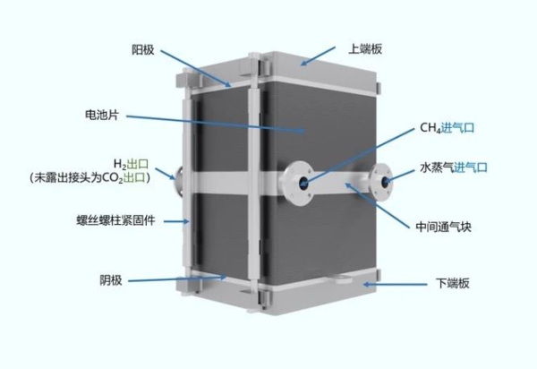 C C-SOEC-CH4電解水耦合天然氣制氫設備,極具潛力的藍氫生產方式。是電堆科技在高溫固體氧化物SOEC電解水制氫基礎上進行的創(chuàng)新性技術,在電解水的過程中加入甲烷,起到輔助活化作用,提升反應活性,電解生產氫氣及可直接捕獲的高純度二氧化碳。